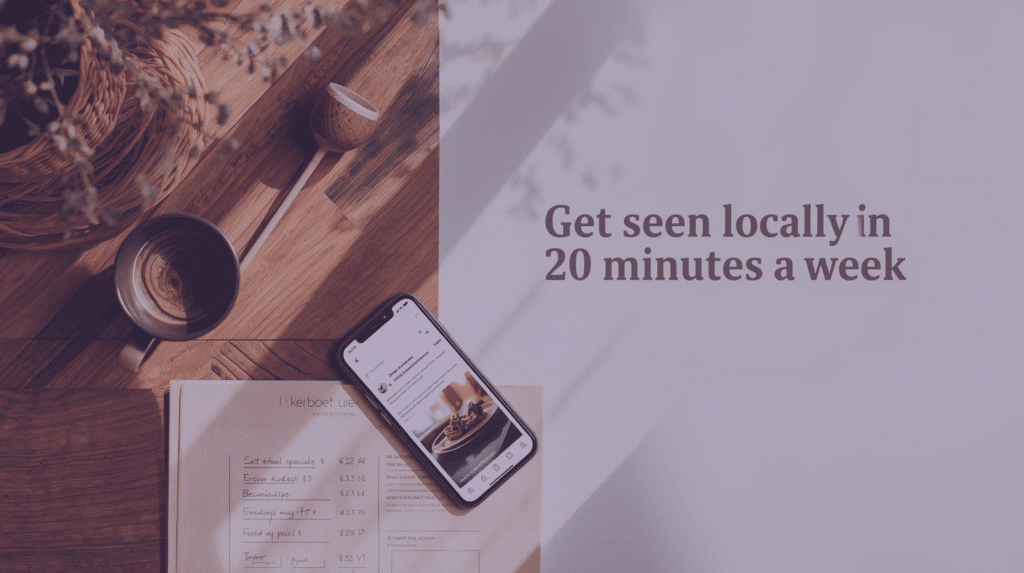 The Local Business Visibility Pack gives you a 20-minute-a-week rhythm to get seen locally — without chasing trends or posting every day.